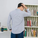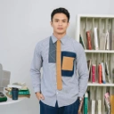 - Kemeja detail motif denim batik untuk gaya modern versatile